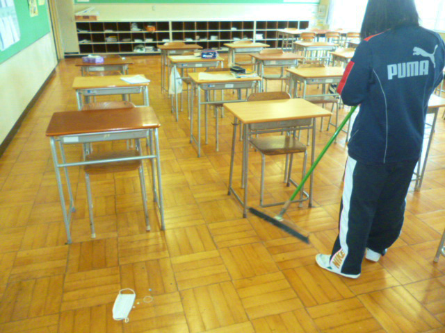 近隣清掃の予定でしたが雨のため、手分けをして各階の教室・廊下を生徒会中心に清掃しました。
